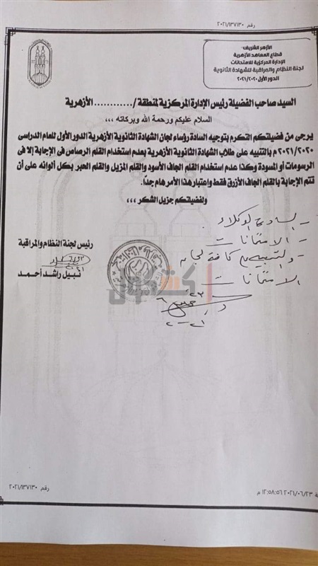 وجاءت تعليمات قطاع المعاهد الأزهرية لرؤساء اللجان كالتالي: