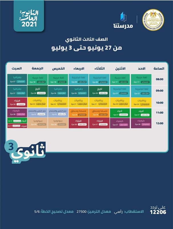لطلاب الثانوية العامة 2021.. مواعيد جداول مراجعات الأسبوع السادس على قناة مدرستنا 2