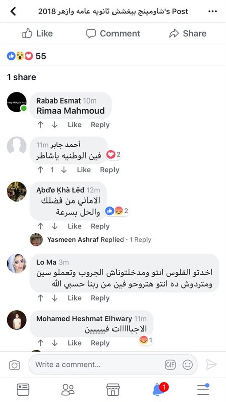 فضحت إحدي طالبات الثانوية العامة صفحة شاومينج بيغشش ثانوية،