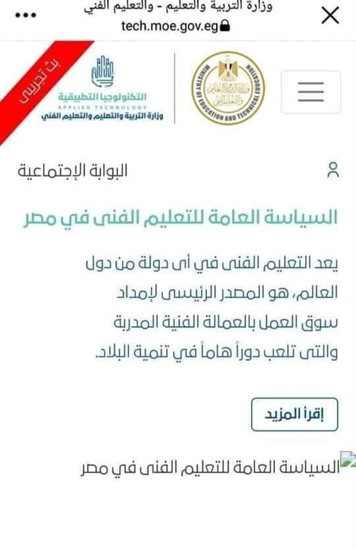 بدأت وزارة التربية والتعليم والتعليم الفني، في إطلاق البث التجريبي للمنصة الرئيسية للتعليم الفني، اليوم، على موقع وزارة التربية والتعليم الالكتروني الرسمي.