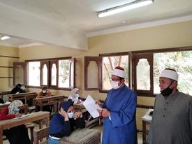 وشدد على تطبيق الإجراءات الوقائية والتدابير الاحترازية للحفاظ على سلامة الطلاب والمراقبين، وضرورة تنفيذ توجيهات فضيلة الإمام الأكبر الدكتور أحمد الطيب، شيخ الأزهر الشريف، بالتعامل مع الطلاب والطالبات كأبنائنا وبث الطمأنينة في نفوسهم وحثهم على المذاكرة والاجتهاد والبعد عن الأمور التي تصرف الانتباه وخصوصًا في فترة الامتحانات، والتعامل بجدية مع الشهادة الثانوية حتى يصل كل طالب إلى مبتغاه ودخول الكلية التي يتمناها، بالإضافة إلى تحقيق التباعد بين الطالبات بجانب وجود حجرة عزل خاصة موجودة في طابق منفصل وبعيدة عن اللجان، ووجود الإشراف الطبي، إضافة إلى القيام باستمرار عمليات الرش والتطهير والتعقيم لجميع اللجان قبل وبعد الامتحان وجاهزية التعامل مع أية شكوى من الطلاب وتوفير الأدوية اللازمة للتعامل مع أية حالات، موضحًا أنه لا توجد أية شكوى من صعوبة الأسئلة وأنها في مستوى الجميع.