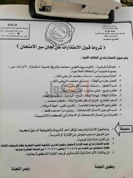 وقررت مديرية التربية تشكيل لجنة مقرها إدارة شئون الطلاب