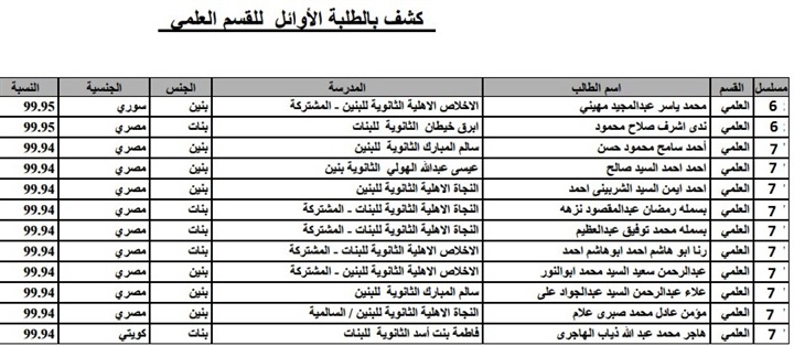 بالأسماء.. الطلاب المصريون يتصدرون قائمة الأوائل في الثانوية الكويتية