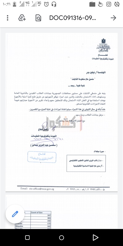 وجهت وزارة التربية والتعليم خطاب رسمي وعاجل لمنسق عام منظومة التابلت، مساء اليوم الأحد الموافق 27 يونيو 2021.