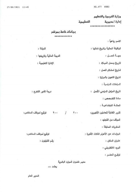 على أن يقوم السادة الراغبین في التقديم ولاينطبق عليهم شرط سن الحصول على "أجازة دراسية " ووقع