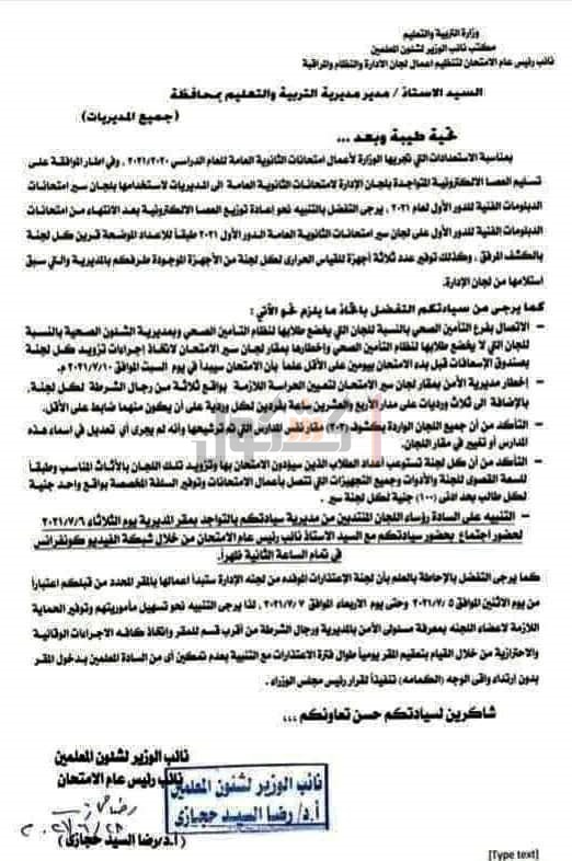 ننشر تفاصيل إجراءات تأمين لجان وطلاب الثانوية العامة 2021