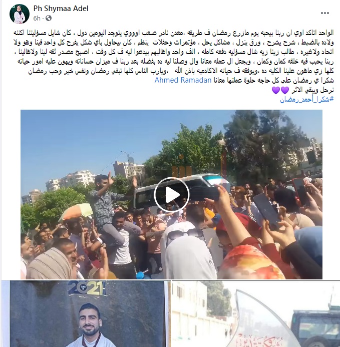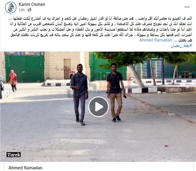 أحمد رمضان هذا نموذج للطالب المثالي الذي لم يدخر جهداً لنفسه فقط بل سعى لنفسه وغيره