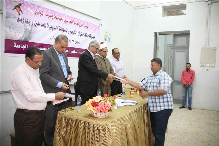 تحكيم المسابقة الشيخ أحمد ريان إمام مسجد جامعة جنوب الوادي.