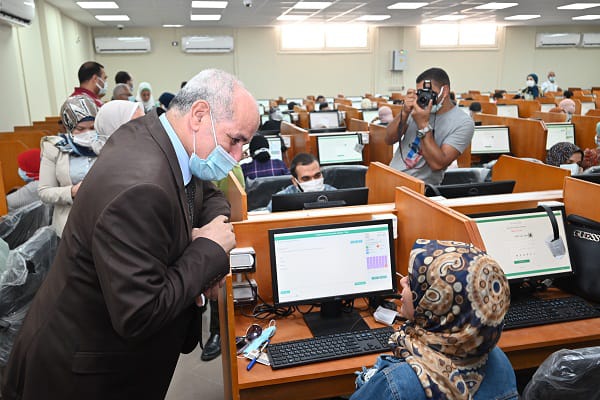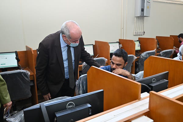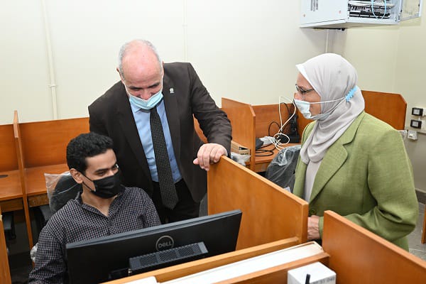 رئيس جامعة الفيوم يشهد الاختبارات الإلكترونية بكلية الصيدلة