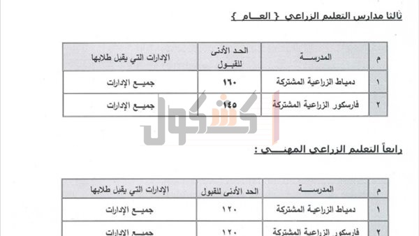 كما أشار إلى أنه فى حالة اختلاف محل إقامة الطالب المثبت ببطاقة ولى الأمر عن الإدارة التعليمية التى حصل منها على الشهادة الإعدادية يتم القبول بمدارس محل الإقامة الجديد المثبت ببطاقة ولى الأمر بعد الحصول على موافقة مدير عام التعليم الفنى، وأكد أنه لايحق للطالب التقدم إلى مدرسة دمياط الجديدة للتعليم والتدريب المزدوج من الإدارات التعليمية عدا دمياط الجديدة الا فى حالة وجود النوعية أو التخصص الذى يرغب في الالتحاق به بادارته التعليمية، وفى حالة رغبة الطالب فى الالتحاق بتخصص غير موجود بادارته التعليمية، يتقدم ولى الأمر بطلب لمدير عام التعليم الفنى للالتحاق بأقرب مدرسة بها التخصص الذى يرغب الالتحاق به على ان يحصل على الحد الأدنى للمدرسة حسب التنسيق المعلن وللتخصص المطلوب داخل المدرسة، وإذ سمحت الكثافة بذلك.