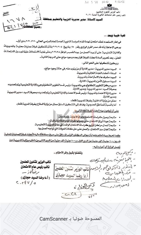 الاستعداد لعقد امتحان شهادة اتمام الدراسة الثانوية العامة للعام الدراسي الحالی 2020/2021، فوجهت