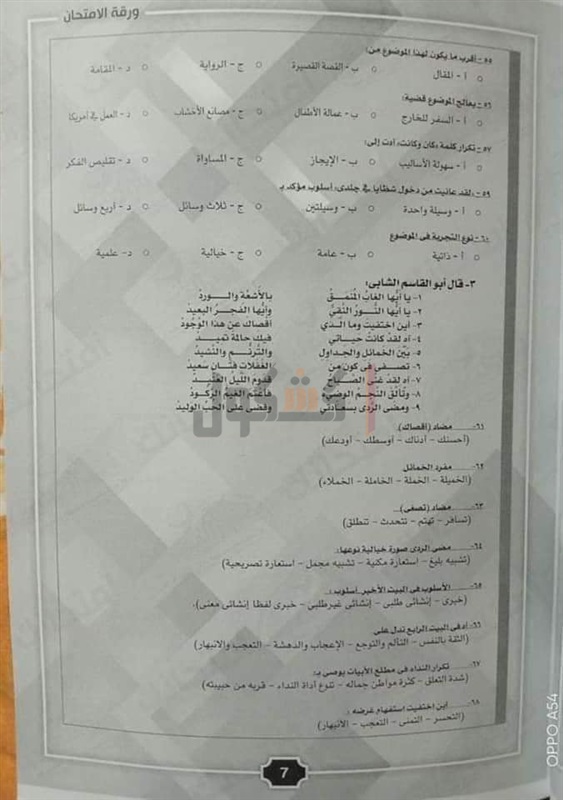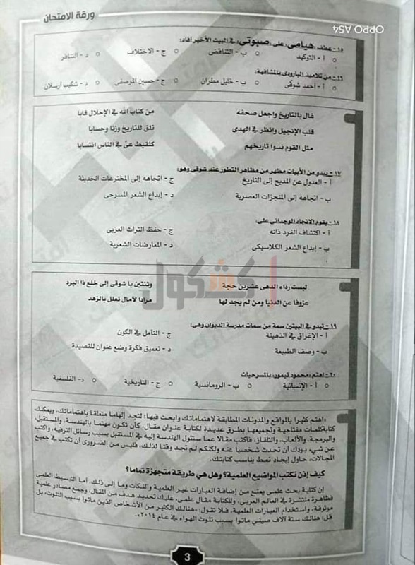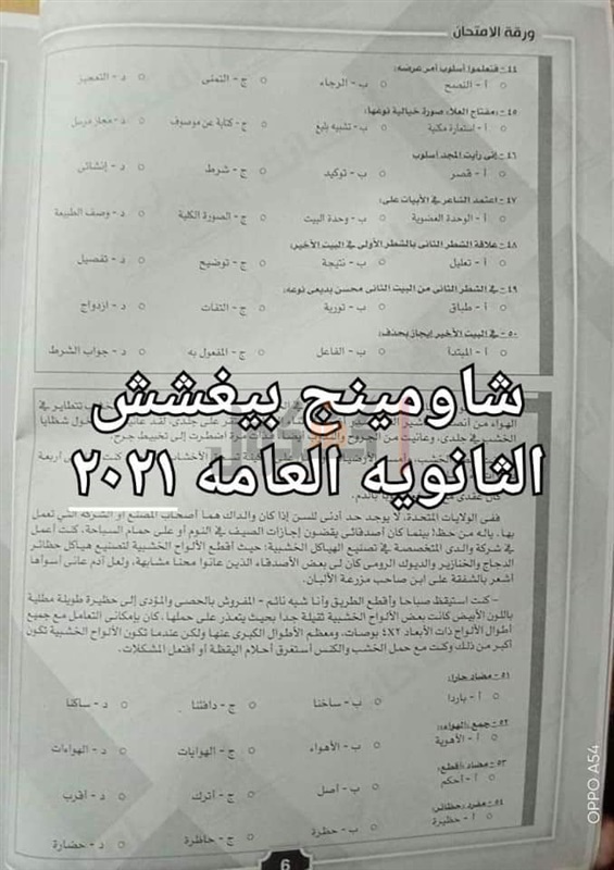قبل بدء امتحان اللغة العربية لطلاب الشعبة العلمية، تداولت صفحات الإنستجرام باسم «شاومنج بيغشش ثانوية عامة»، صور امتحان لمادة اللغة العربية، يزعمون أنه الامتحان الذي يؤديه الطلاب بعد قليل.