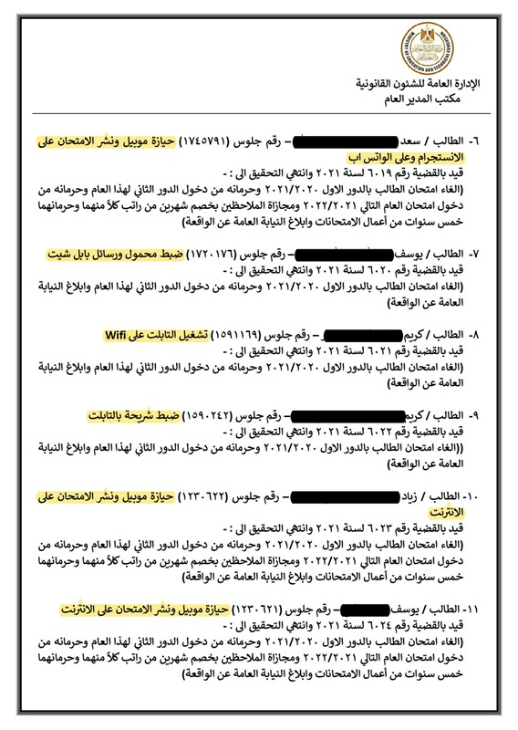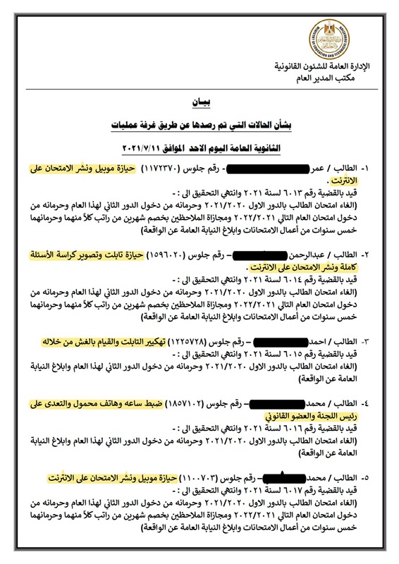 ورصد فريق مكافحة الغش الإلكتروني 15 حالة غش باستخدام أجهزة الهواتف المحمولة والسماعات