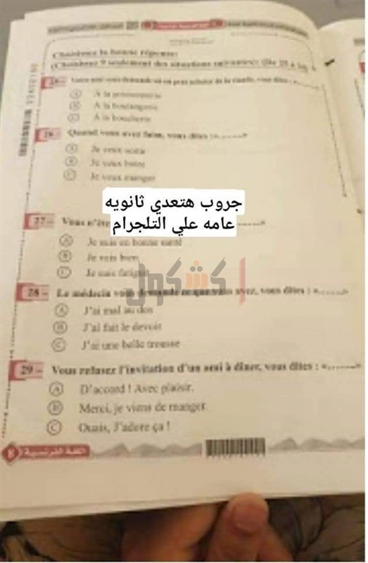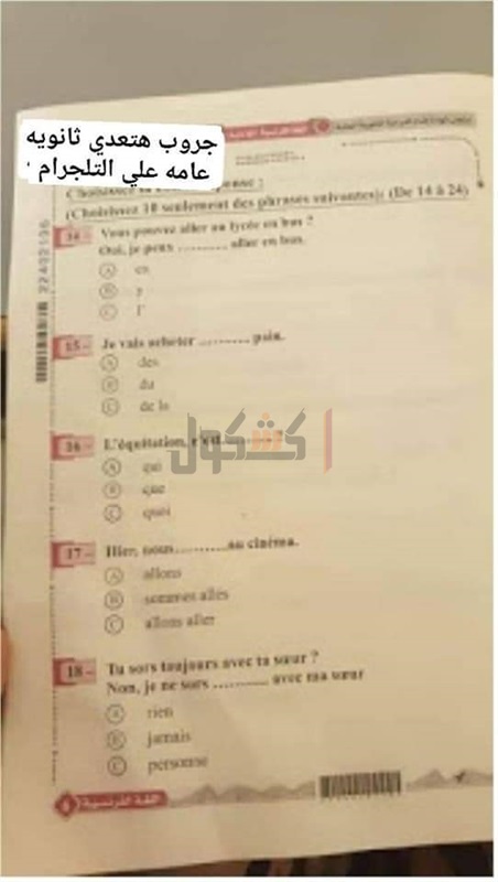 تداول أسئلة من امتحان اللغة الفرنسية عبر تليجرام
