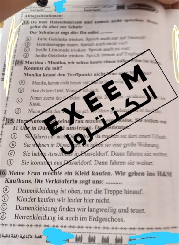 تداولت بعض صفحات السوشيال ميديا بـ"تليجرام"، امتحان مادة اللغة الألمانية لطلاب الثانوية العامة "الشعبة العلمية"، زاعمين أنه الامتحان الذي يؤديه حاليا الطلاب الآن داخل اللجان الامتحانية في ثاني أيام امتحاناتهم للعام الدراسي الحالي.
