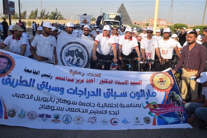 نظمت جامعة سوهاج سباق للطريق وآخر للدراجات لمسافة ٢ كيلو متر، ضمن احتفالات الجامعة بمرور ٥٠ عاماً على بدء التعليم الجامعي محافظة سوهاج، شارك فيه ١٢٠٠ طالب وطالبة، وبحضور كابتن ياسر ريان نجم النادي الأهلي، وكابتن طارق السيد نجم نادي الزمالك، بالحرم الجامعي الجديد بمدينة سوهاج الجديدة، بحضور الدكتور أحمد عزيز رئيس جامعة سوهاج، والدكتور صفا محمود نائب رئيس الجامعة لشئون التعليم والطلاب، والدكتور مصطفى عبدالخالق نائب رئيس الجامعة للطلاب، والدكتور حسان النعماني نائب رئيس الجامعة للدراسات العليا والبحوث، والمحاسب أشرف القاضي القائم بعمل أمين عام الجامعة، والدكتور أحمد الخطيب المدير التنفيذي لليوبيل، وصبري إبراهيم مدير عام رعاية الشباب المركزية، ولفيف من عمداء الكليات وأعضاء هيئة التدريس ومعاونيهم والعاملين والإعلامين وممثلين المجتمع المدني والطلاب.