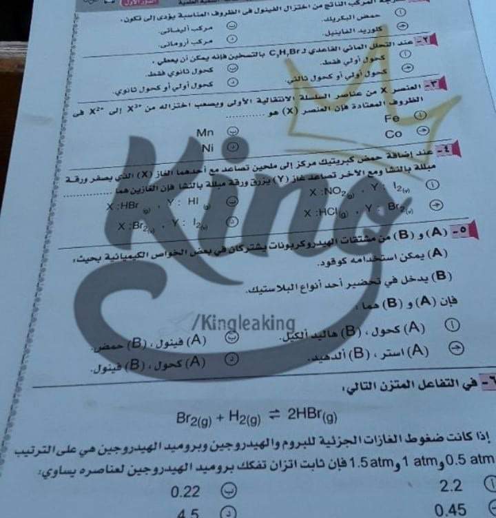 تداولت صورا لأسئلة امتحان الكيمياء، عبر صفحات السوشيال ميديا، لطلاب الشعبة العلمية بالثانوية العامة 2021، زاعمين انه الامتحان الذي يؤديه الطلاب حاليا داخل اللجان.