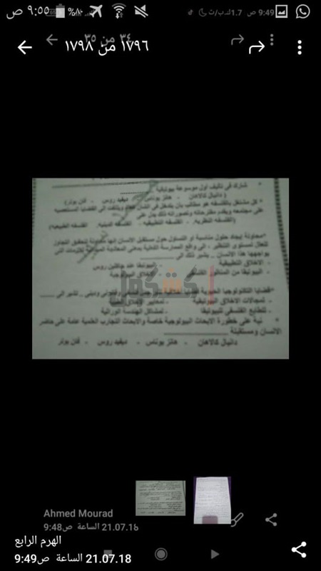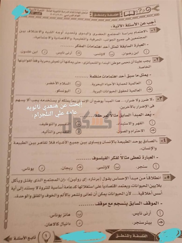 تداول أسئلة امتحان الفلسفة والمنطق عبر السوشيال ميديا «صور»