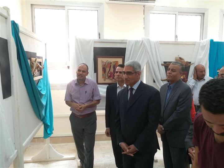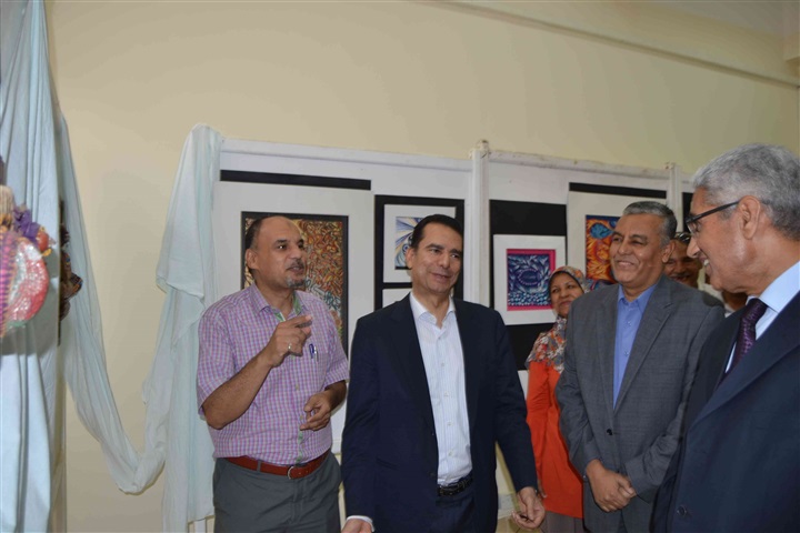 رئيس الجامعة، خلال جولته التفقدية للمعرض، على ما شاهده من إبداعات فنية لهذا المعرض