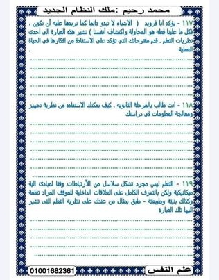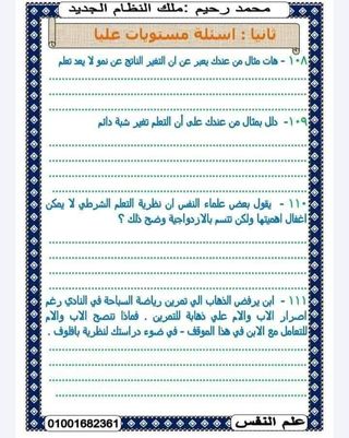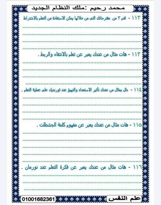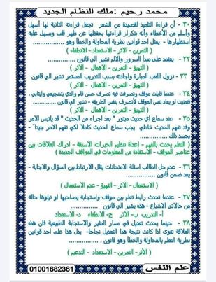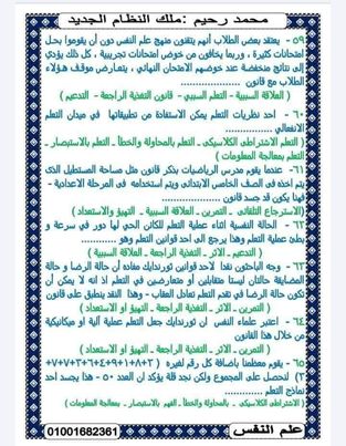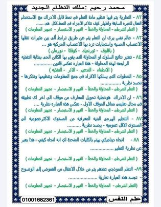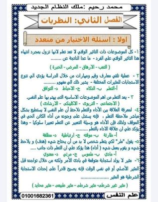 ننشر مراجعة ليلة الامتحان لمادة علم النفس لطلاب الشعبة الأدبية بالثانوية