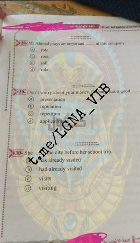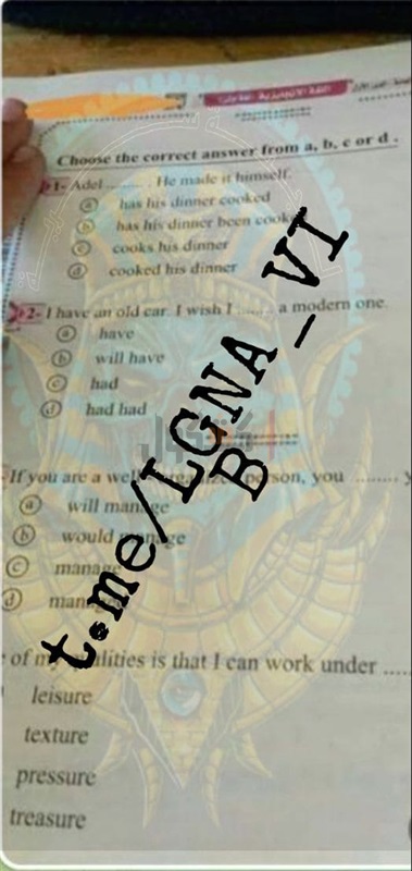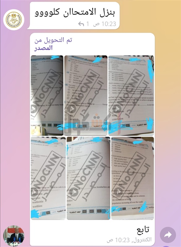 تداول أسئلة امتحان مادة اللغة الإنجليزية، عبر تطبيق التليجرام وصفحات السوشيال ميديا، زاعمين أنه امتحان مادة اللغة الأجنبية الأولى" اللغة الإنجليزية" الذي يؤديه طلاب الشعبة العلمية حاليا داخل اللجان الامتحانية.