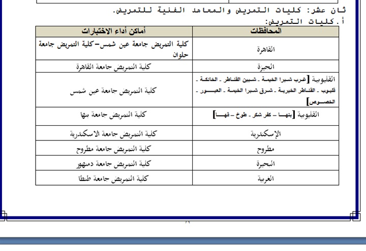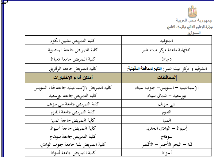 خريطة أماكن أداء اختبارات القدرات كليات ومعاهد التمريض