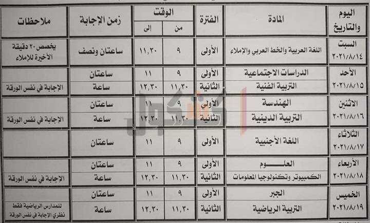 فيما تقرر عقد الامتحان التكميلي للفصل الدراسي الأول للشهادة الإعدادية يومي الثلاثاء
