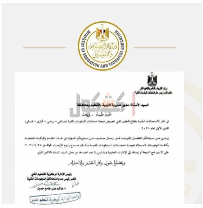 تنبيه مهم للمديريات التعليمية بشان نتيجة الدبلومات الفنية 2021