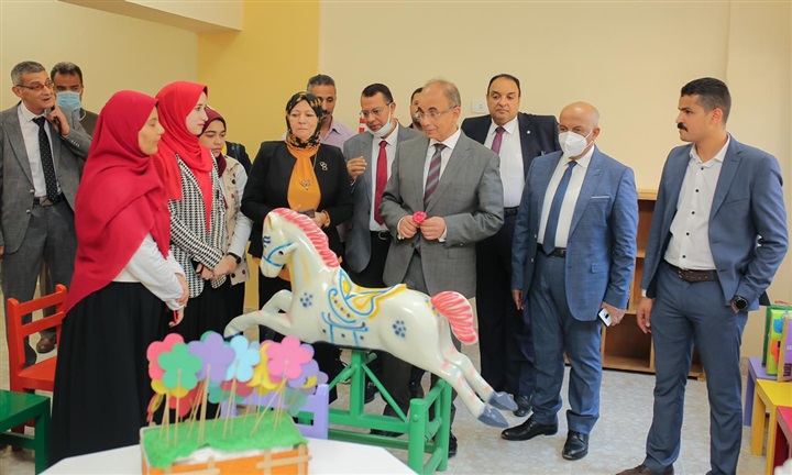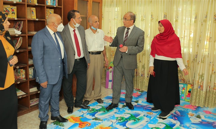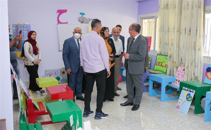 النوعية، والتجهيز الجيد بفصول الدراسة، كما تفقد قاعة الرضع ومكتبة الحضانة والحديقة