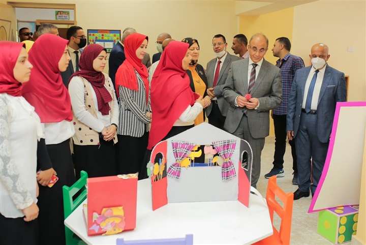 رياض الأطفال، مشيداً بالوسائل التعليمية والترفيهية التى قام بها طالبات كلية التربية