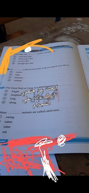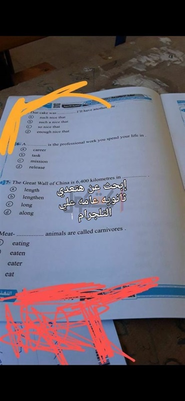 تداول أسئلة امتحان مادة اللغة الإنجليزية، عبر تطبيق التليجرام وصفحات السوشيال ميديا، زاعمين أنه امتحان مادة اللغة الأجنبية الأولى" اللغة الإنجليزية" الذي يؤديه طلاب الشعبة الأدبية حاليا داخل اللجان الامتحانية.