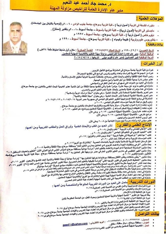 ننشر السيرة الذاتية لمدير الأكاديمية المهنية للمعلمين الجديد «مستند»