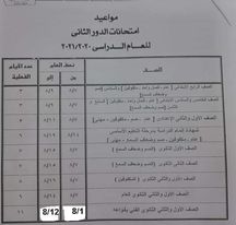ويبدء الصفين الأول والثانى الثانوي العام ( للصم وضعاف السمع ) خلال الفترة من 7 إلى 15 أغسطس 2021