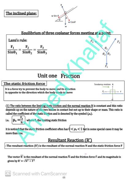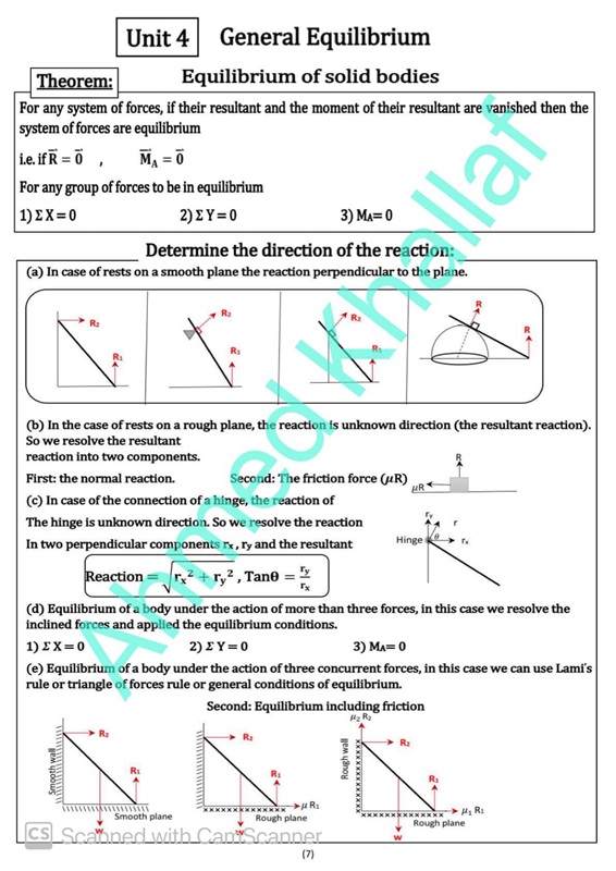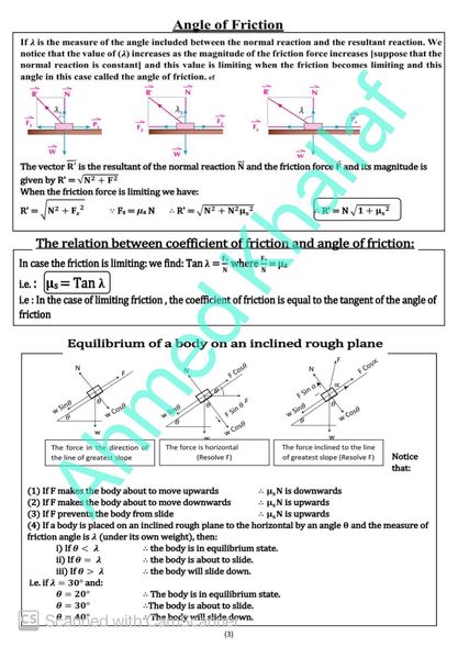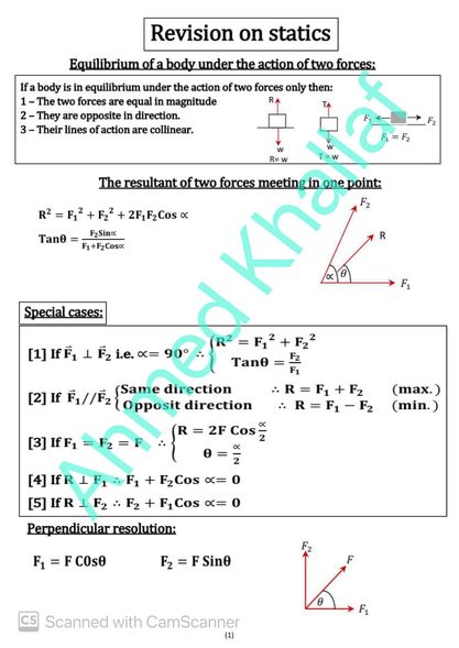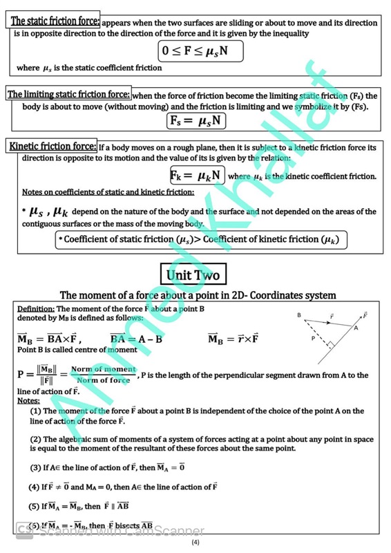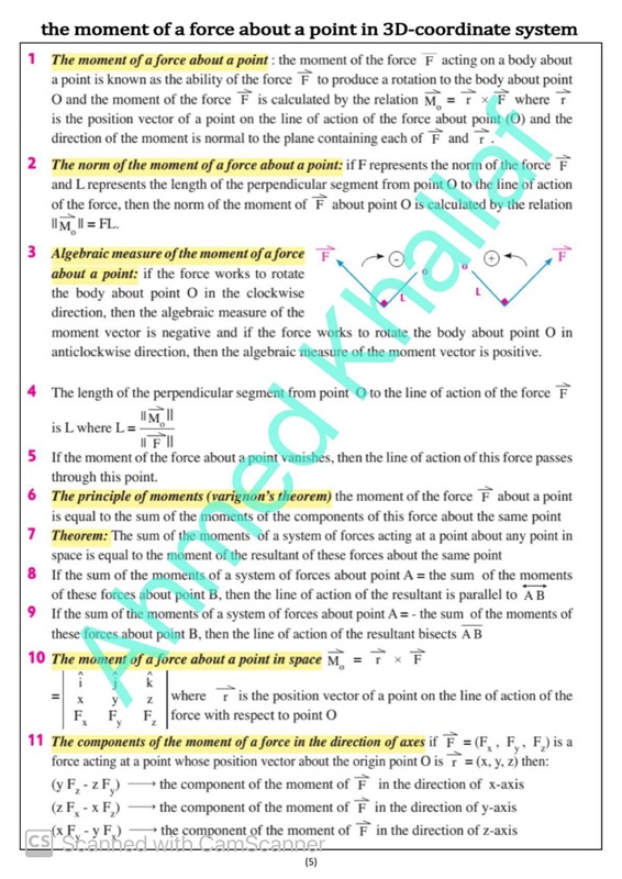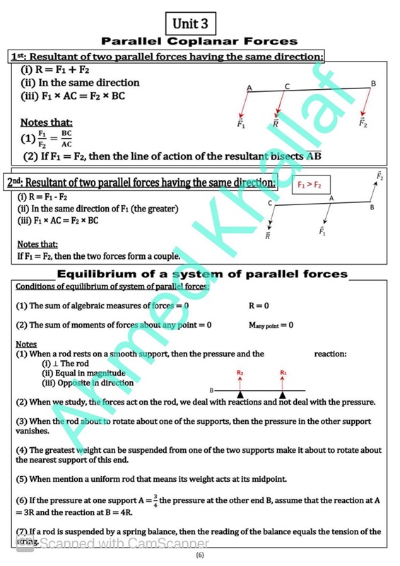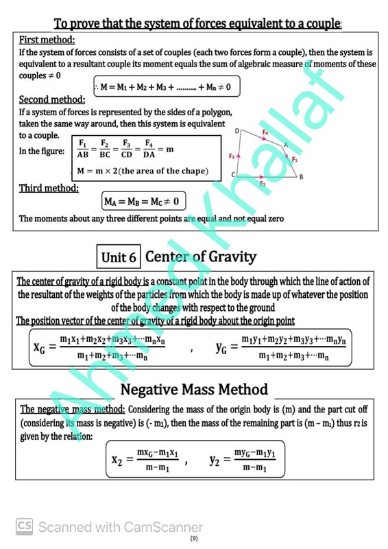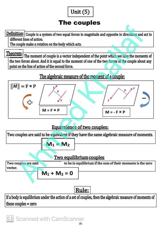 ننشر مراجعة ليلة الامتحان لمادة الاستاتيكا لطلاب شعبة علمي رياضة