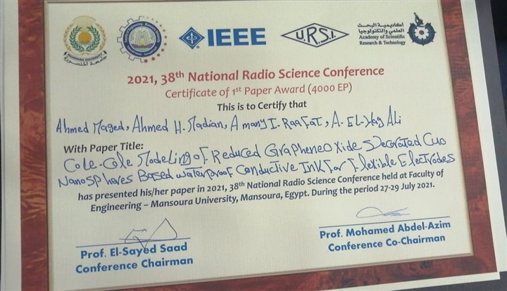 فاز مركز أبحاث النانو إلكترونيات للدوائر والنظم المتكاملة (نيسك) بجامعة النيل الأهلية؛ بالتعاون مع هيئة الطاقة الذرية؛ بجائزة أحسن بحث علمي في فاعليات "المؤتمر القومي الثامن والثلاثون لعلم الراديو"، والذي نظمته أكاديمية البحث العلمي والتكنولوجيا التابعة لوزارة التعليم العالي والبحث العلمي، ممثلة في اللجنة الوطنية لعلم الراديو.