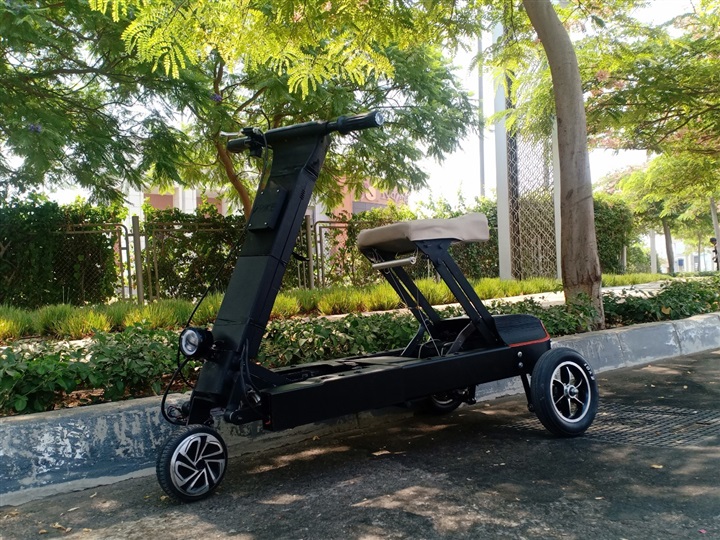 على البيئة واظهار الشكل الحضاري لمصر من خلال تقديم أسكوتر يعمل بالكهرباء بمميزات قد تؤهل هذا الابتكار للتعميم في أنحاء الجمهورية، سكوتر يمكن أن يتحول لحقيبة سفر بعد ان تنتهي من رحلتك سواء كانت قصيره او حتى طويله، يمكن حمله ووضعه فى أى مكان دون أن يتطلب ذلك حيز اً يذكر .