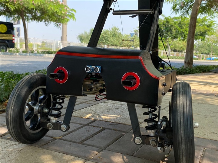 ولم تتوقف مميزات المشروع المبتكر عند هذا الحد، بل يحتوي الأسكوتر على بطاريه يمكن شحنها مثل أي جهاز إلكتروني يحتاج لشاحن لإعادة شحنه في المنزل، لتكون الميزة الجديدة والإضافة القوية أنه ي لمحطات شحن كهربائي في الطرق وهو ما سيوفر كثيرًا ،ُ حيث يحتوي الأسكوتر علي حساسات استشعار تعمل علي تفادي الاصطدام حيث إنها تقوم بإنذار المستخدم عند اقتراب أي جسم منه.