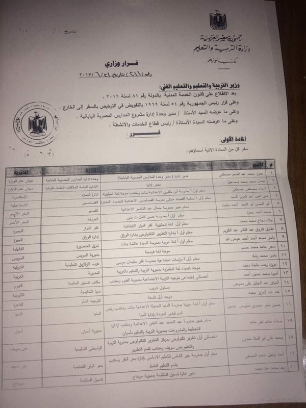 من سافروا فى هذه البعثة معلمين منهم 2 فقط إداريين من ديوان عام الوزارة، بينما يكون
