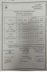 أعلنت مديرية التربية والتعليم بأسوان، اليوم جداول امتحانات الدور الثانى للصف الأول الثانوى والثانى الثانوى بشعبتيه العلمى والادبي.