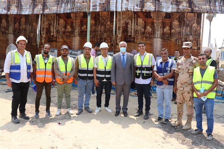 والمنسق العام للمشروع، ولفيف من مهندسي الهيئة الهندسية حيث تفقدوا كافة الأعمال القائمة