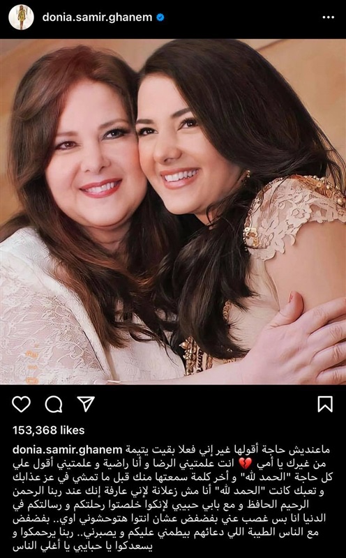 «بقيت يتيمة».. رسالة مؤثرة من دنيا سمير غانم بعد وفاة والدتها