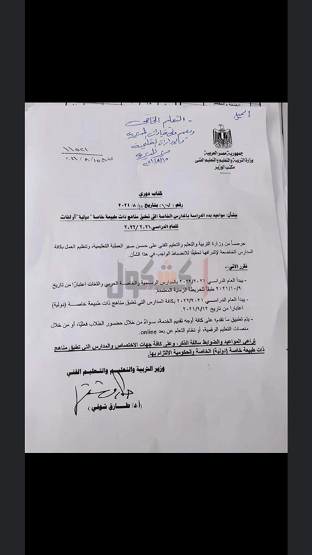 بتوقيع "شوقي".. قرار مهم بشأن موعد بدء الدراسة بالمدارس الدولية