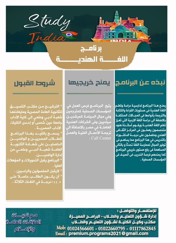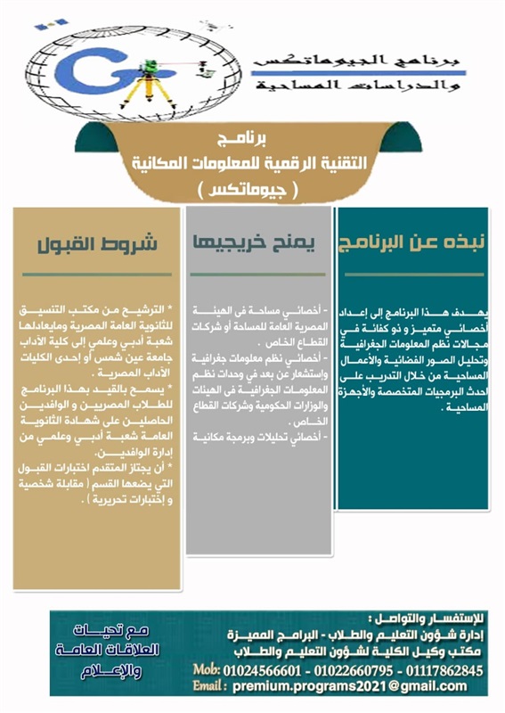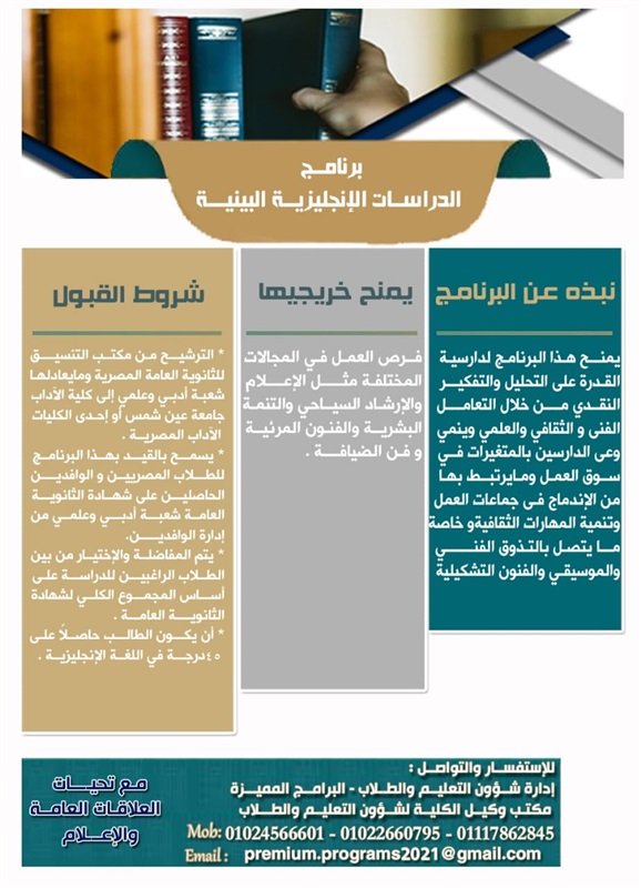 التى تفيد الطالب في اختيار البرنامج المناسب له، وكذلك يتم عرضها على الشاشات بالكلية.