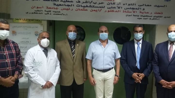 وأبناء أهالي محافظة أسوان وتم إضافة 6 أجهزة تنفس صناعي و10 مونيتور ومضخات محاليل
