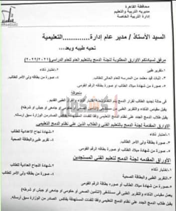 الأوراق المطلوبة للتقديم للجنة الدمج التعليمي 2021_ 2022