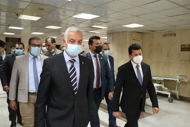 «أشرف صبحي» يتابع حالة مصابى حادث فريق السرعة بجامعة المنوفية.. صور