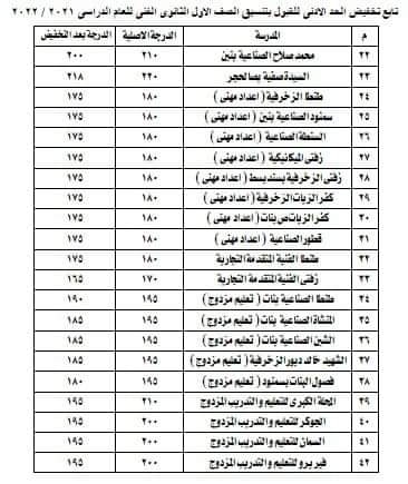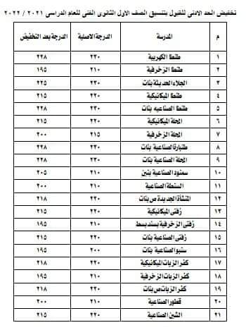تخفيض تنسيق القبول بالمدارس الثانوية الفنية بالغربية