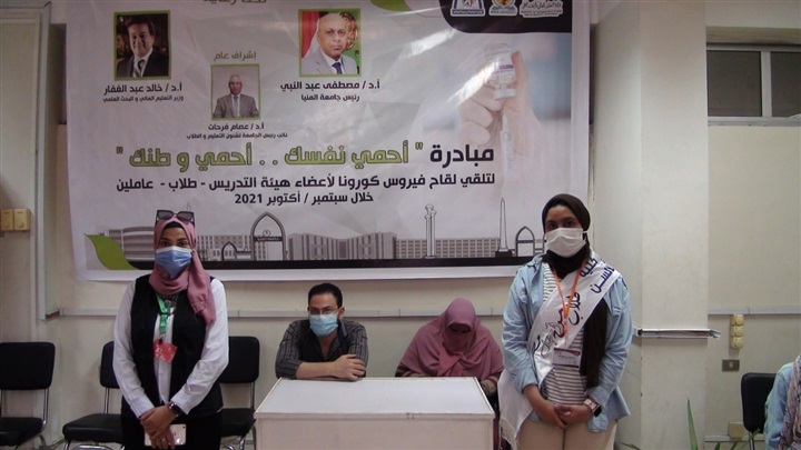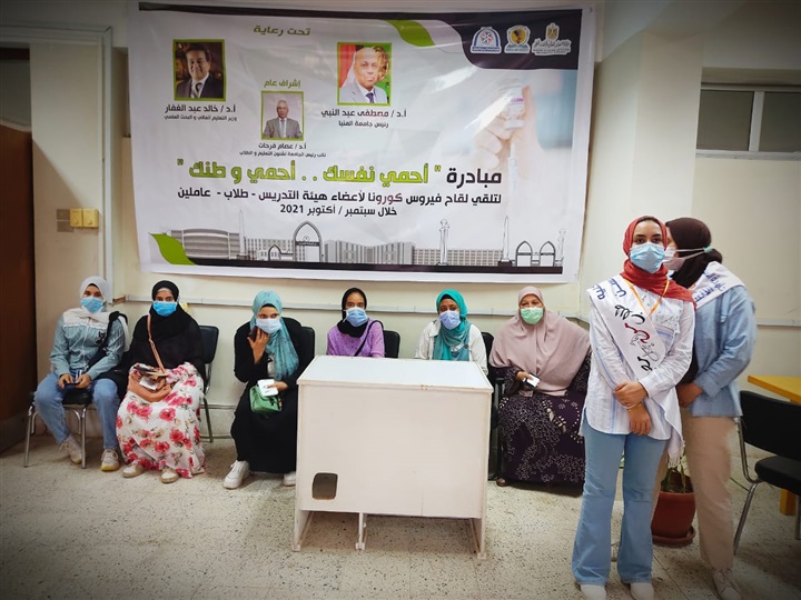 تفقد الدكتور مصطفى عبدالنبي، رئيس جامعة المنيا، يرافقه الدكتور عصام فرحات نائب رئيس الجامعة لشئون التعليم والطلاب، إجراءات تلقي لقاح فيروس كورونا لمنتسبي جامعة المنيا من أعضاء هيئة التدريس والطلاب والعاملين، ضمن مبادرة "أحمي نفسك.. أحمي وطنك" تنفيذًا لاستراتيجية الدولة ووزارة التعليم العالي بشأن التعامل مع أزمة كورونا والوقاية من أخطار الإصابة والعدوى، وحرصاً على سلامة منتسبي الجامعة، واستعداداً لاستقبال العام الجامعي الجديد.