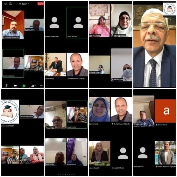 عقد قطاع الدراسات العليا والبحوث بجامعة المنوفية اجتماع جلسة مجلس الدراسات العليا برئاسة الدكتور أحمد فرج القاصد نائب رئيس الجامعة للدراسات العليا والبحوث، "اون لاين" عبر منصات الاجتماعات الإلكترونية، بحضور وكلاء الدراسات العليا والبحوث بكليات ومعاهد الجامعة، وأعضاء المجلس.