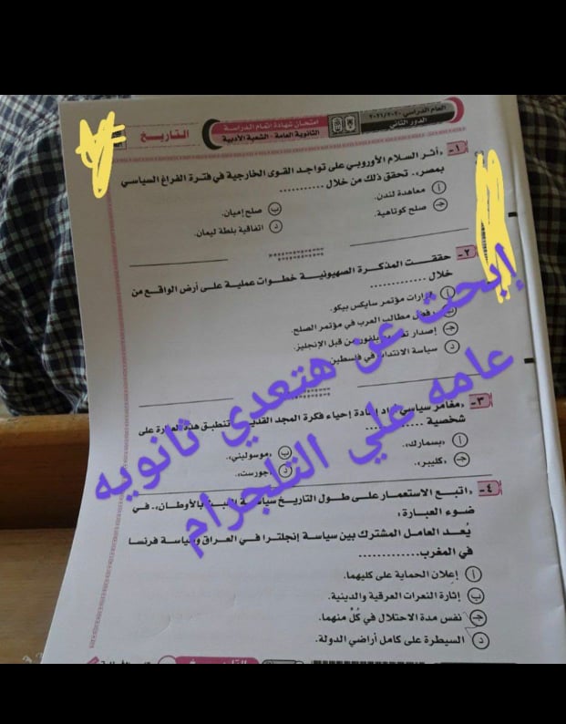 تداول امتحان التاريخ لطلاب الثانوية العامة 2021 «دور ثان»